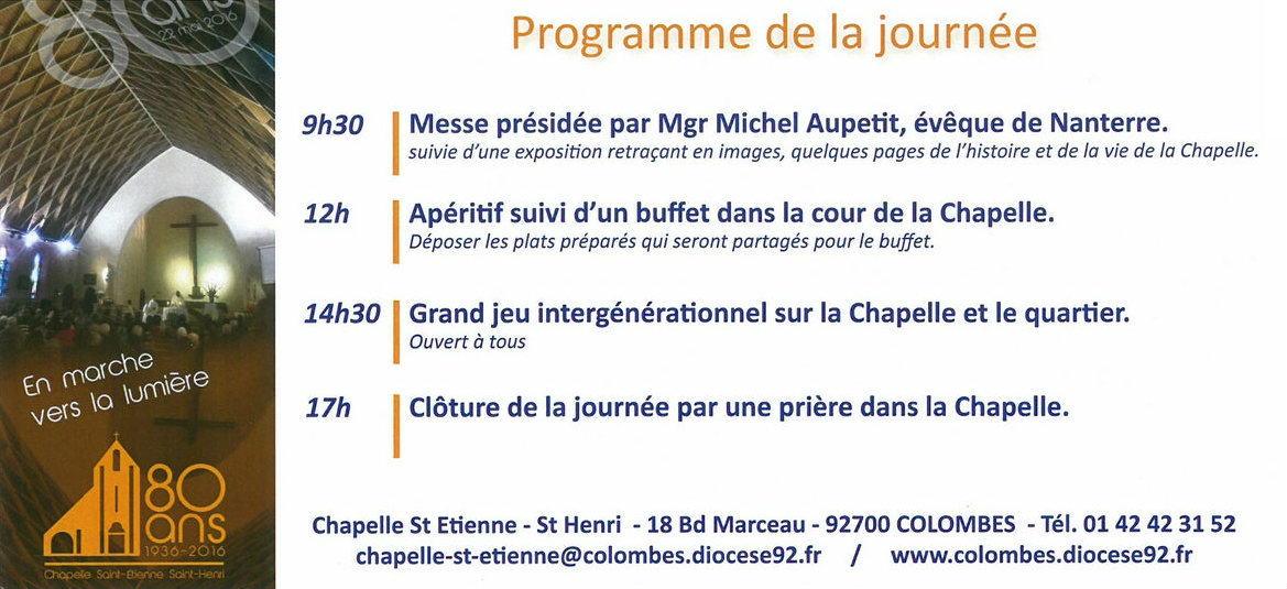 Chapelle Saint-Etienne et Saint-Henri de Colombes, 80 ans le 22 mai 2016