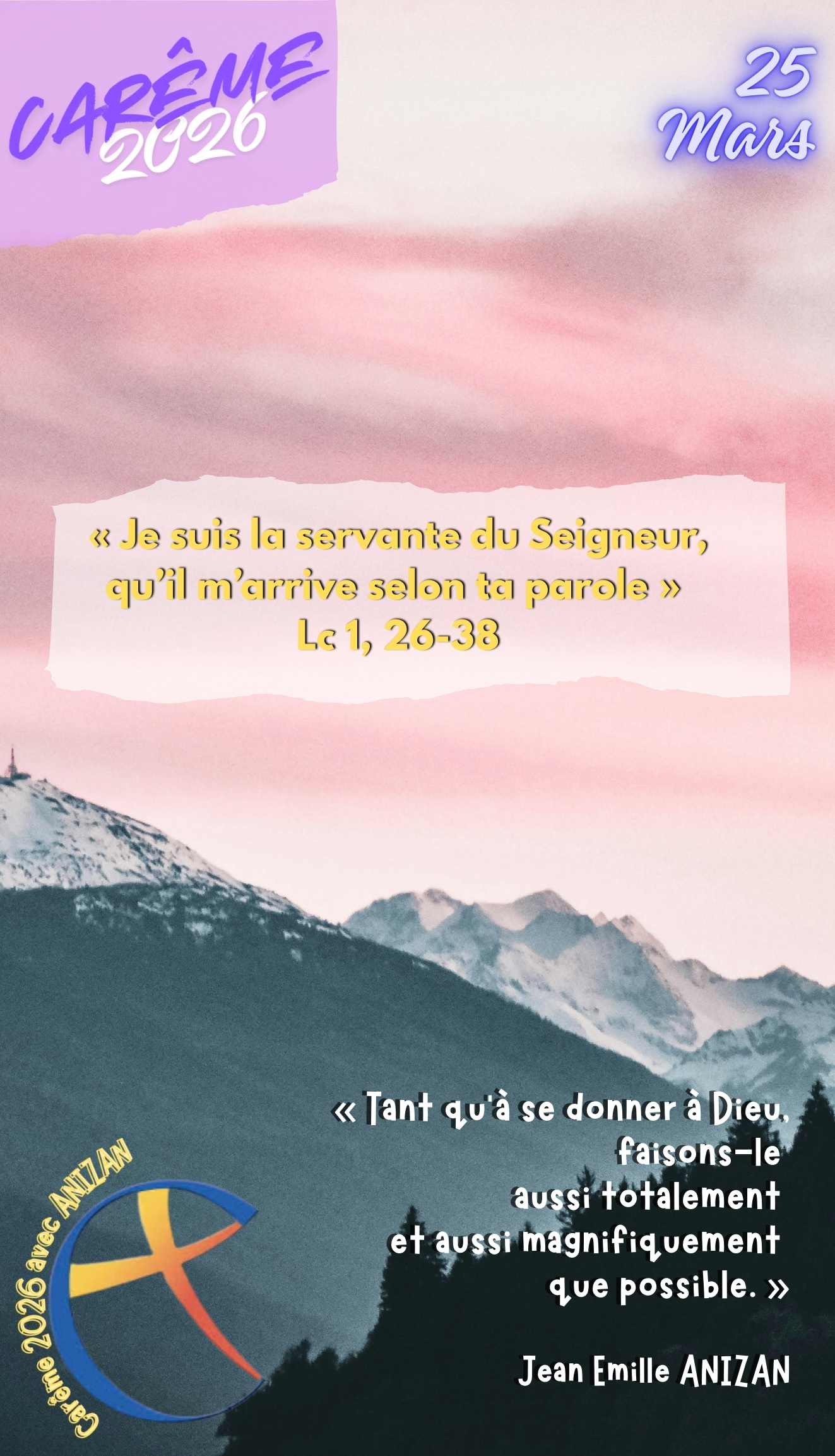 Bon chemin de Carême à tous avec le père Anizan, avec un visuel par jour, du 18 février 2026 à Pâques le 5 avril 2026