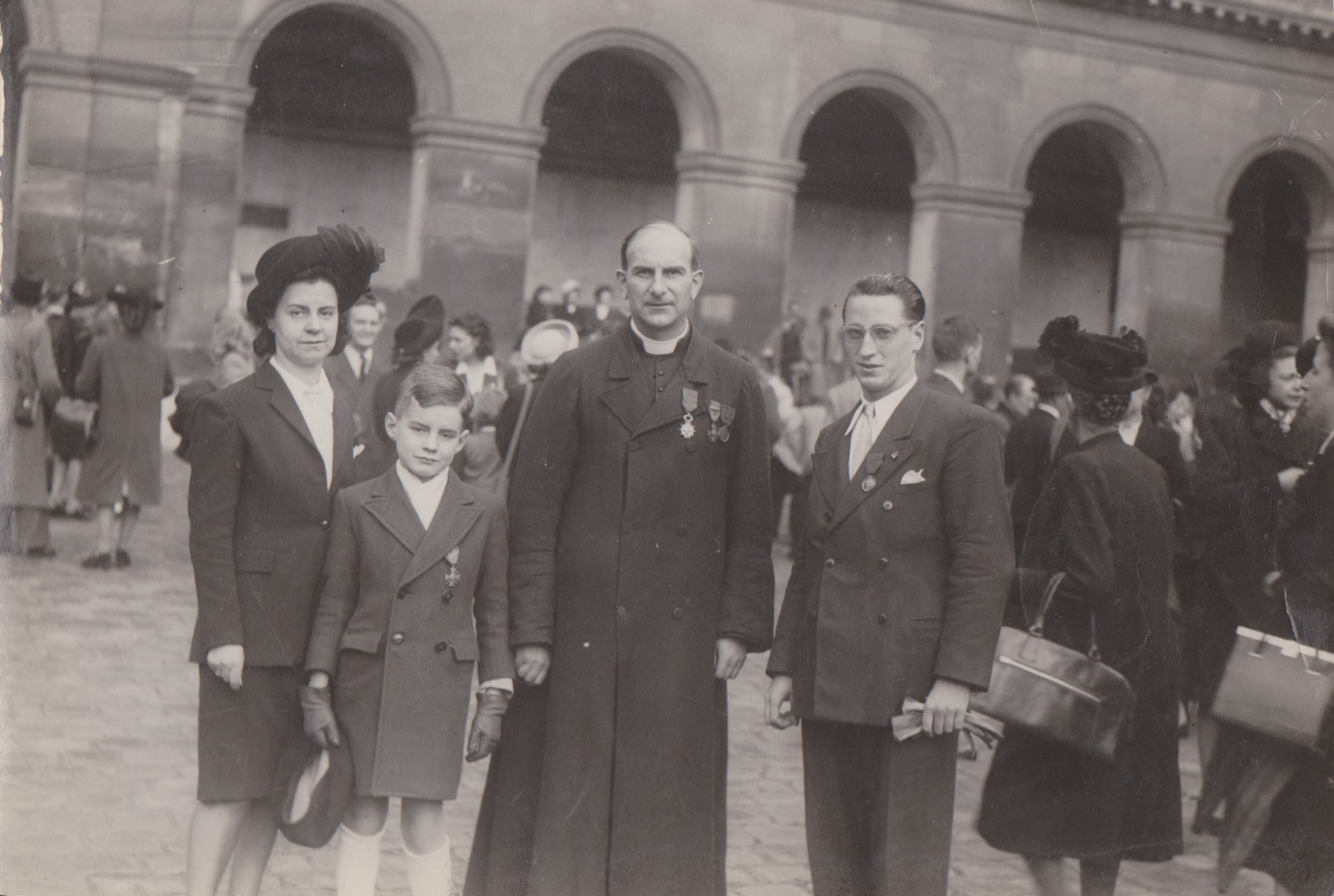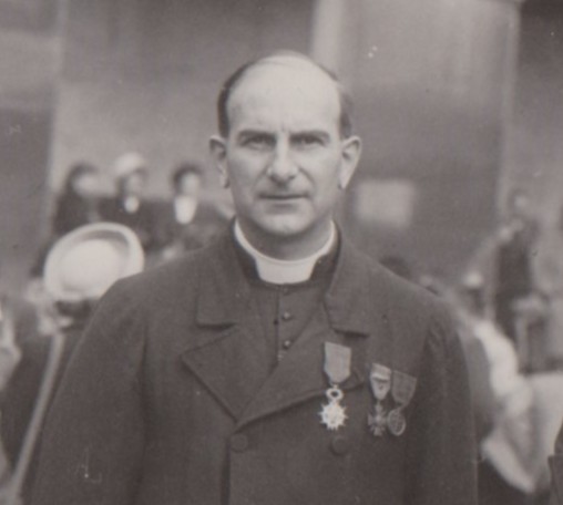 Le père Louis portant la Légion d’honneur, la croix de guerre et la médaille de la résistance (vers 1945-1950, archives des Fils de la Charité, n°2545/bis)