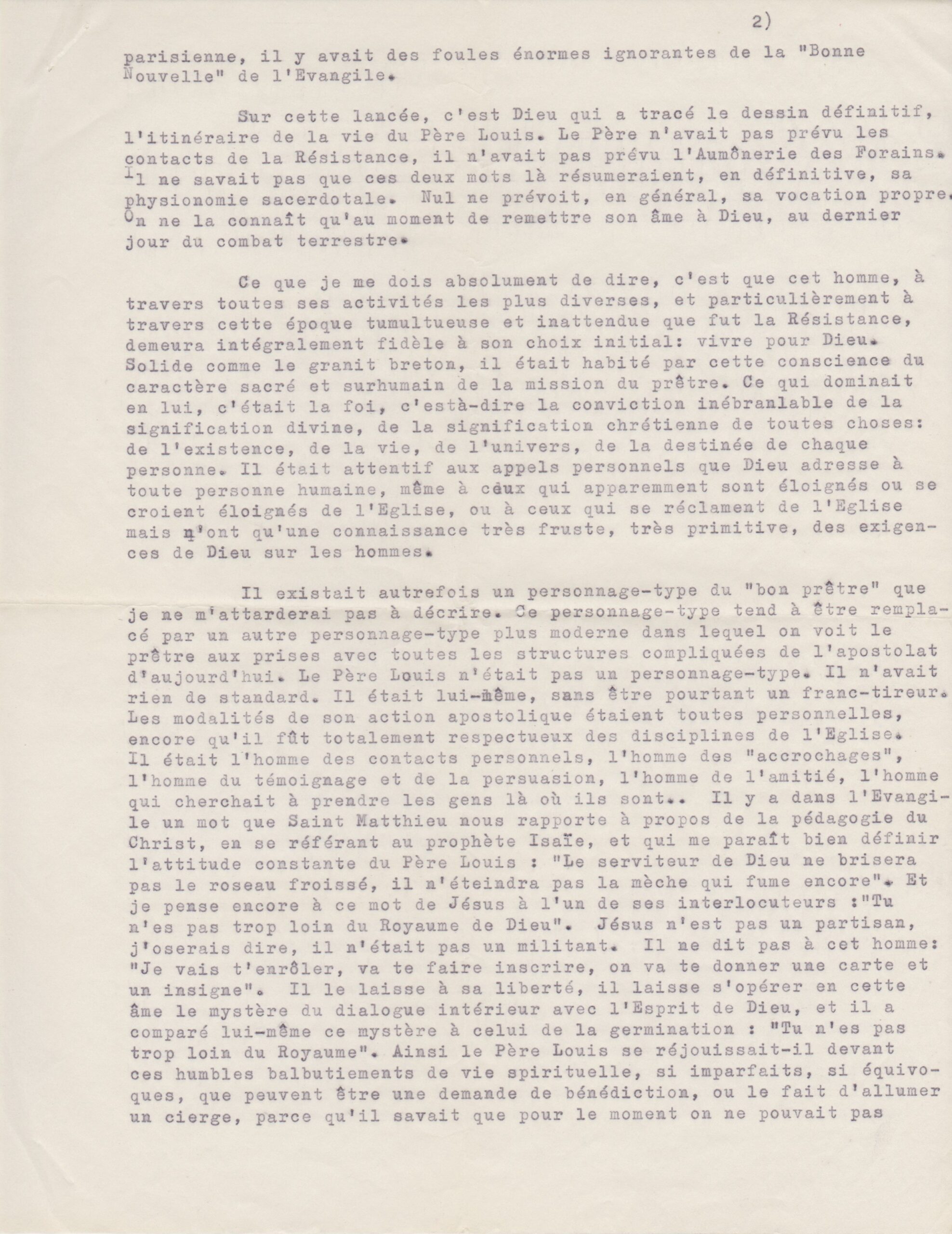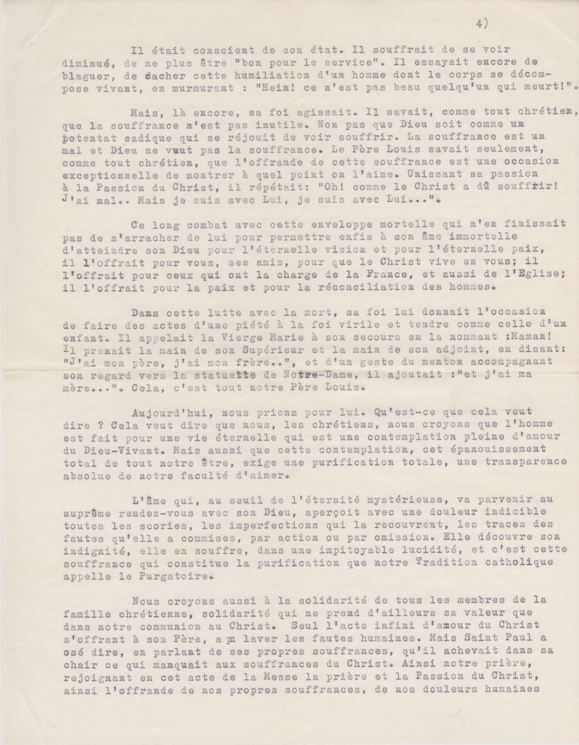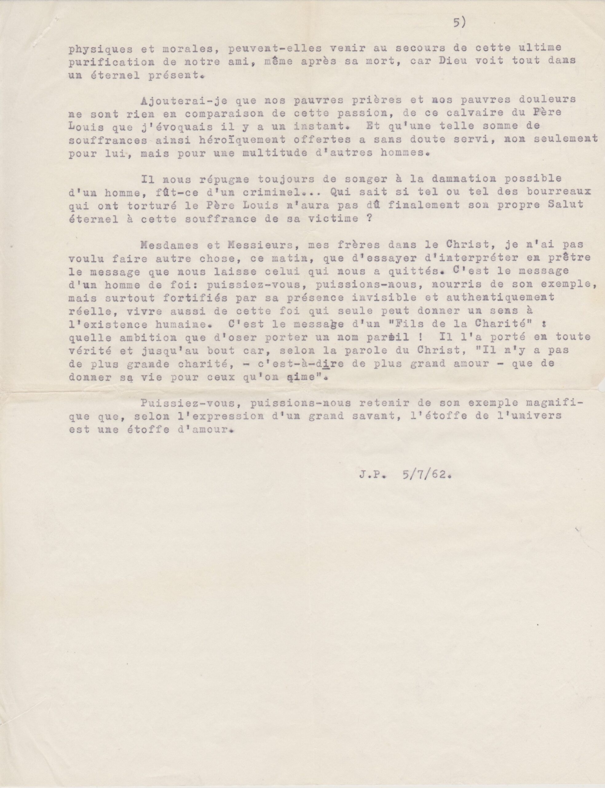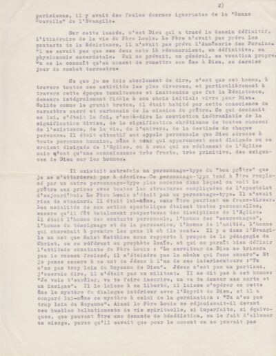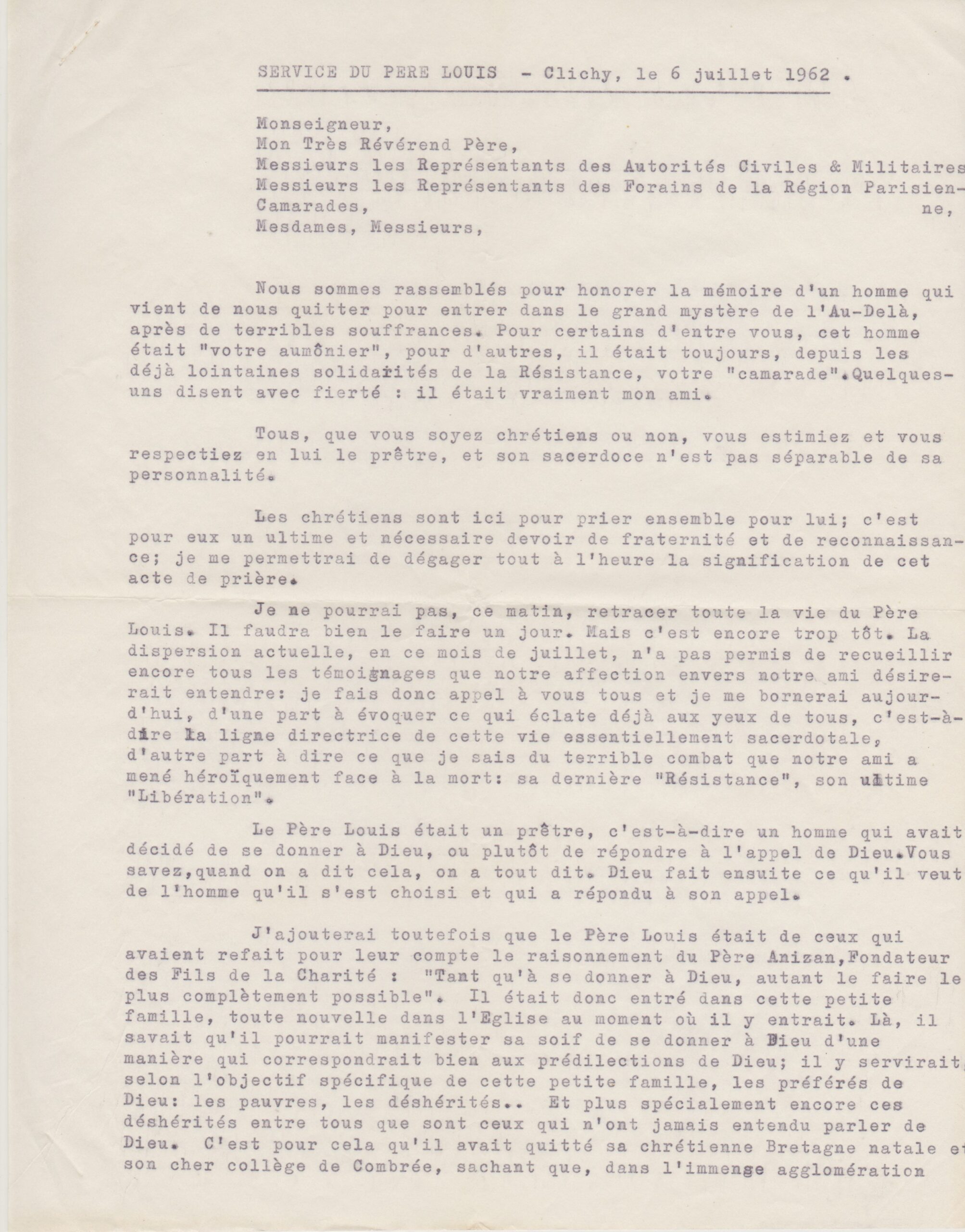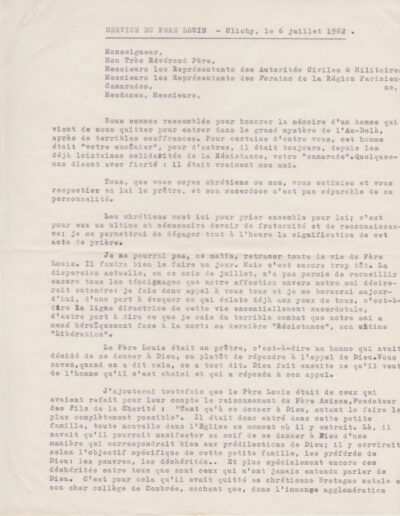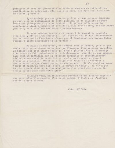 Texte de Jean Pihan pour les obsèques du père Louis (1962, archives des Fils de la Charité, 2E10/01)