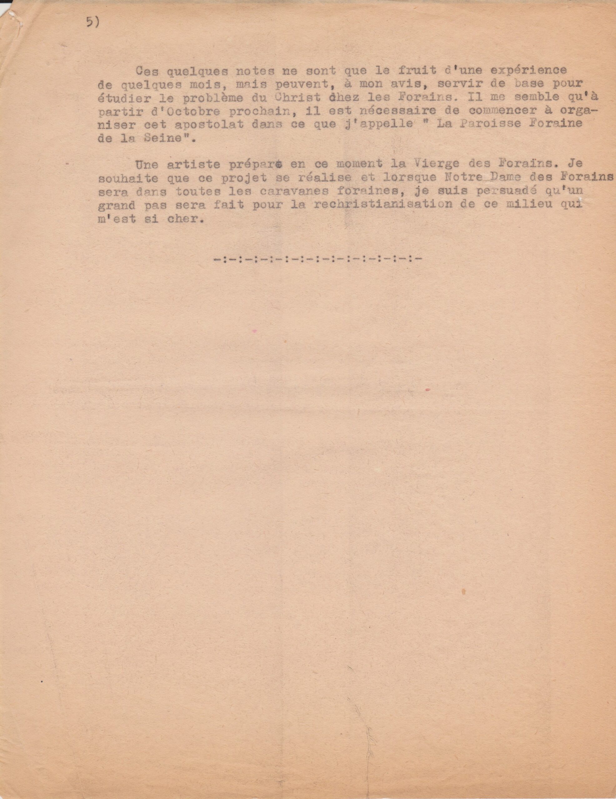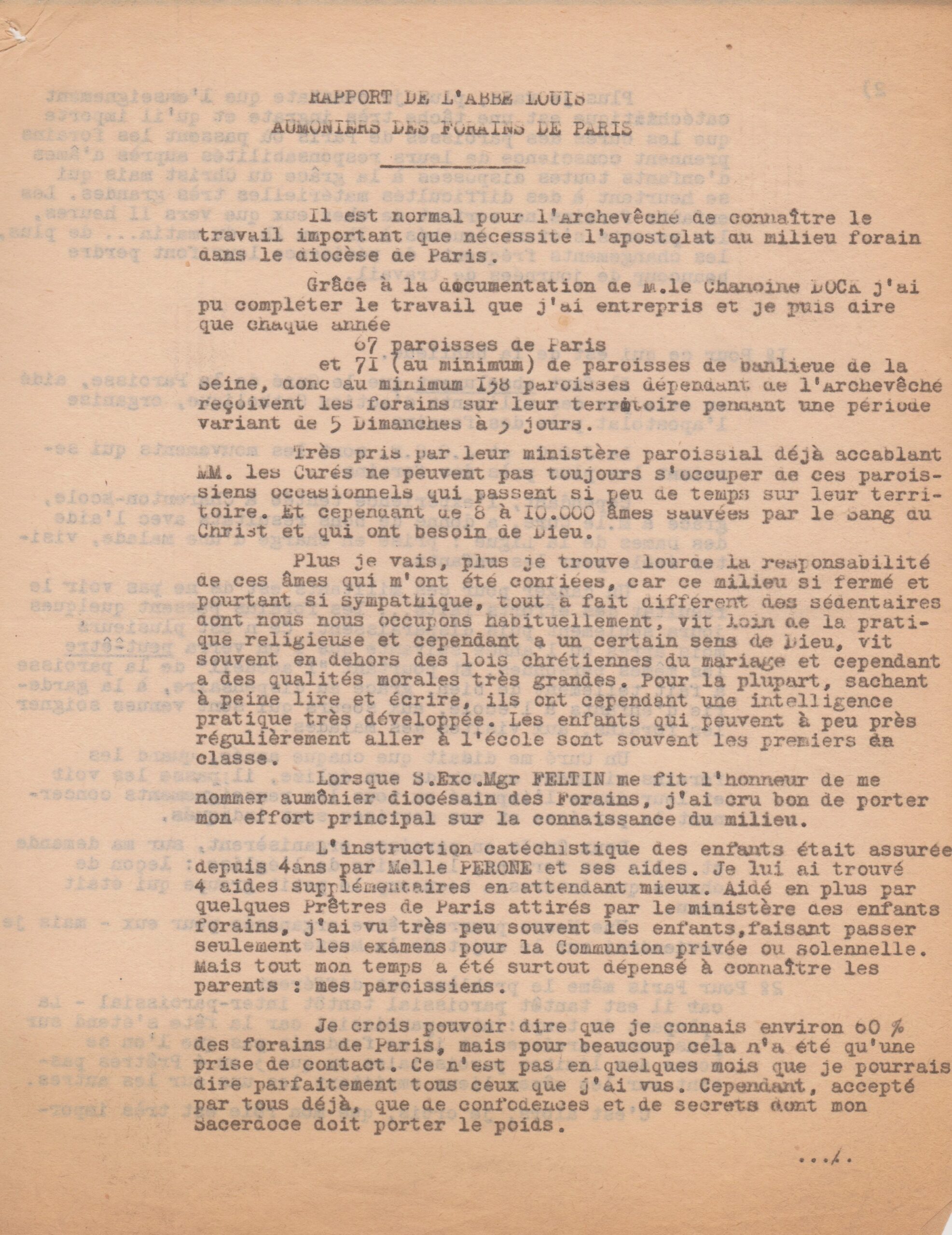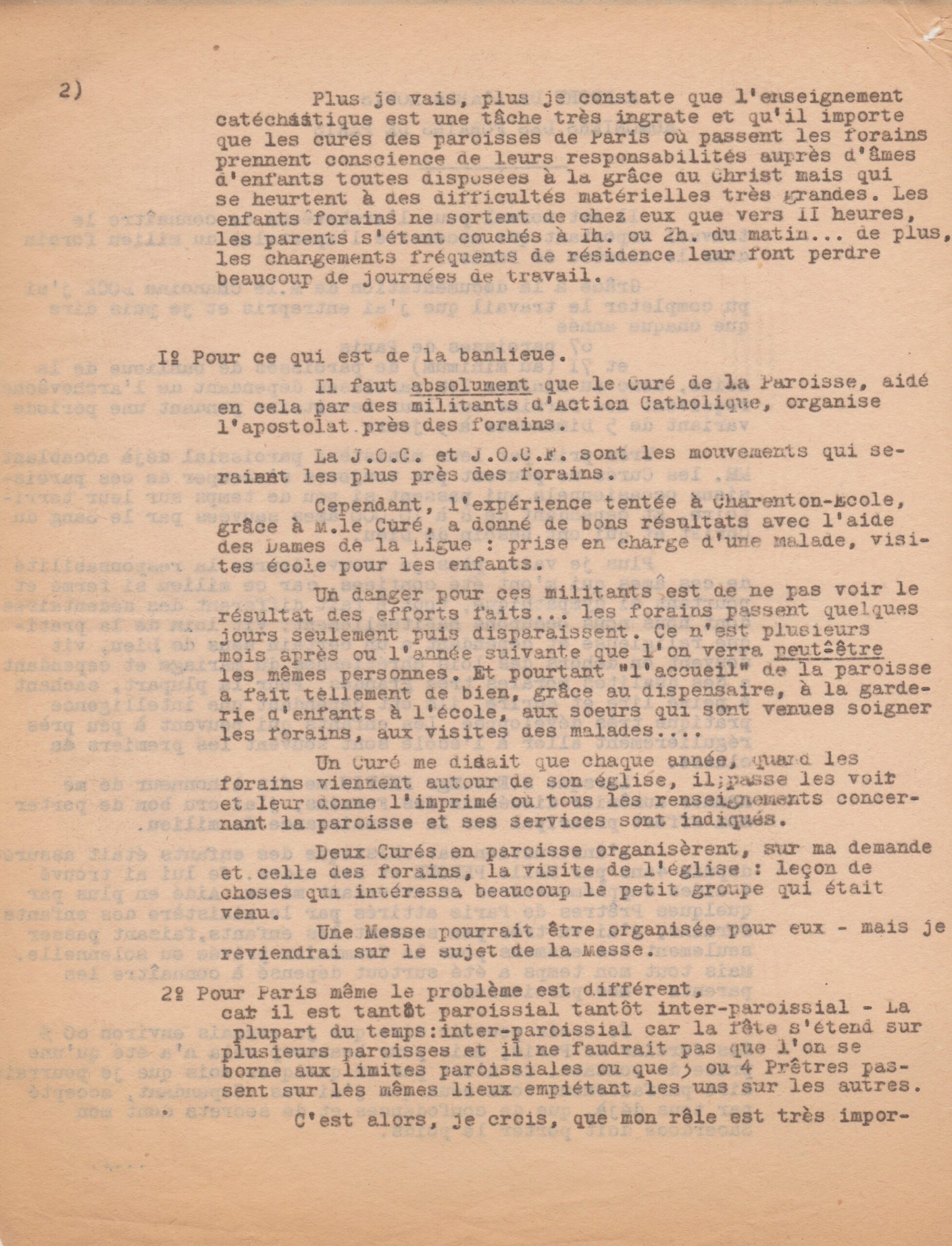 Rapport du père Louis sur les forains de Paris (1950-1962, archives des Fils de la Charité, 2E10/04)