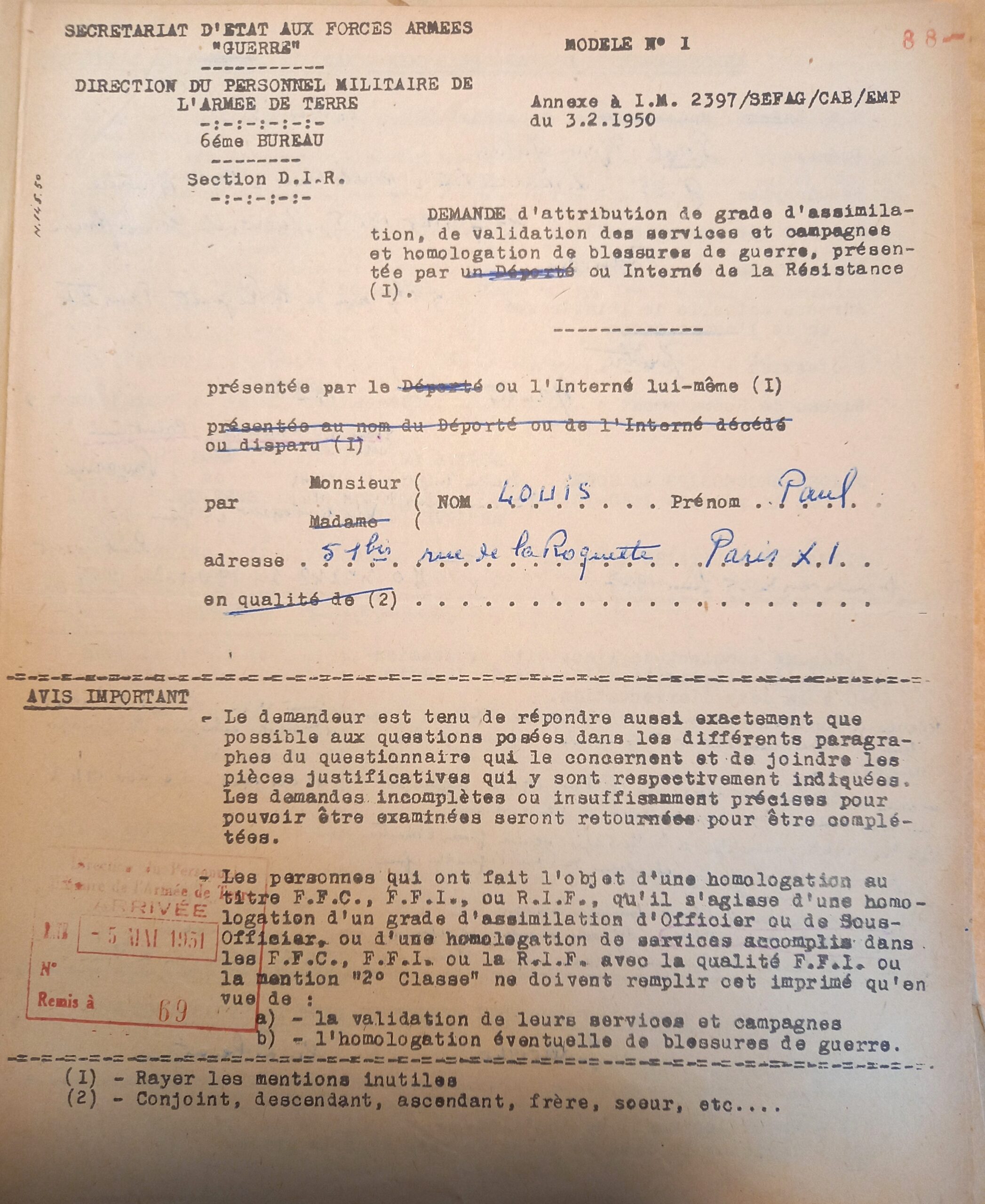 GR 16 378185 : dossier de résistant de Paul Louis