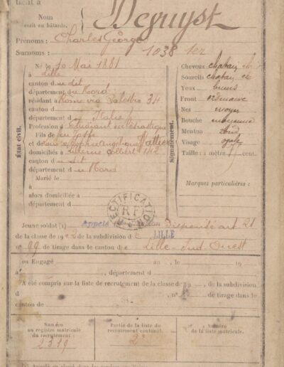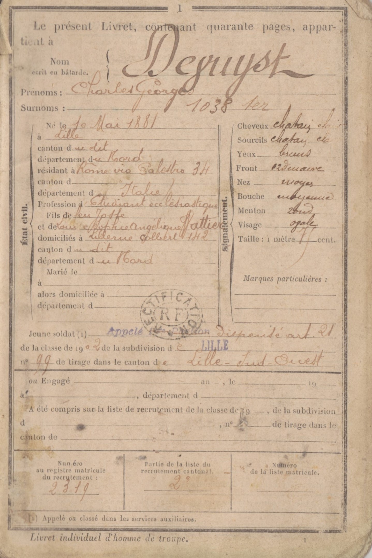 Livret militaire de Charles Devuyst (1903, archives des Fils de la Charité, 2E01/01)