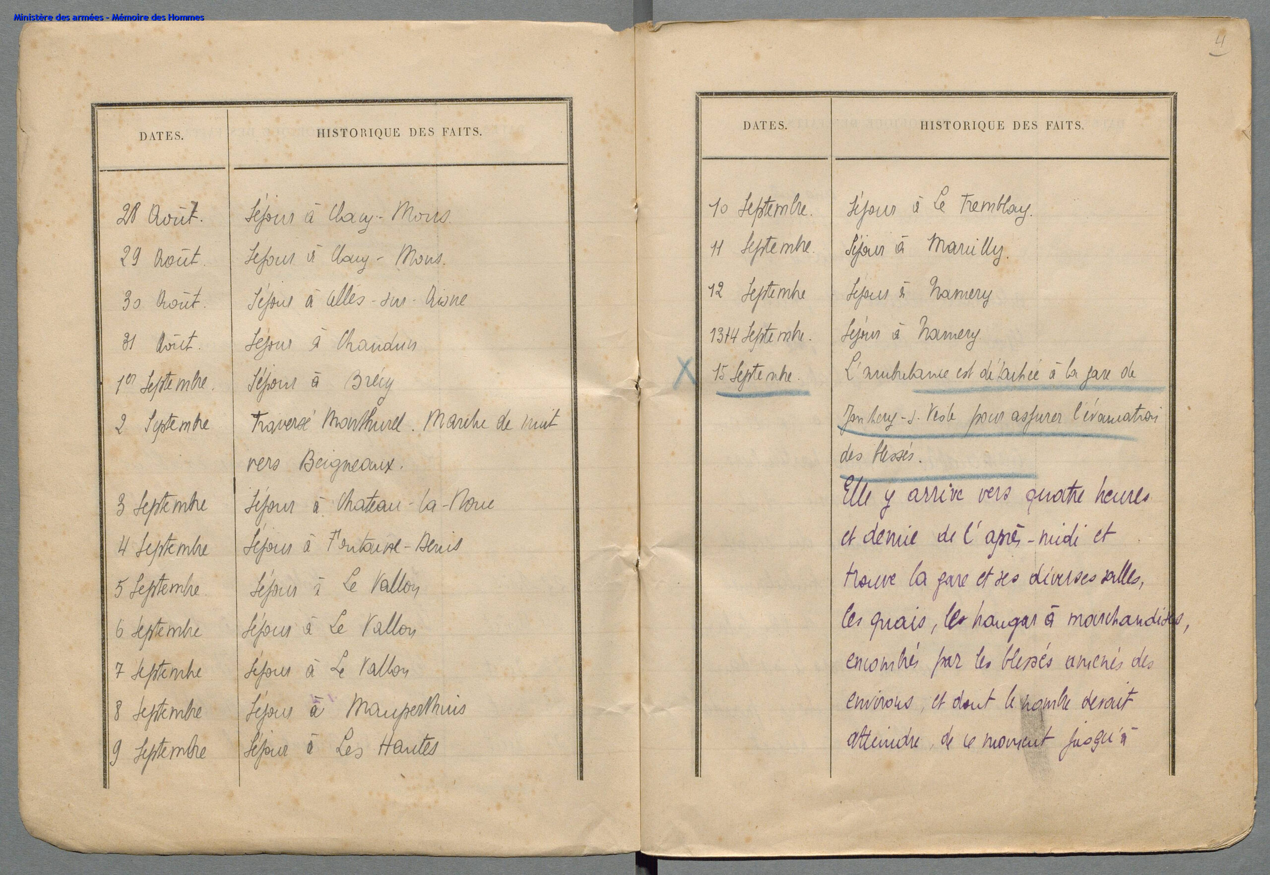Journal des marches de l’ambulance 16 (1914, Service Historique de la Défense, DE/2021/ZE/213)
