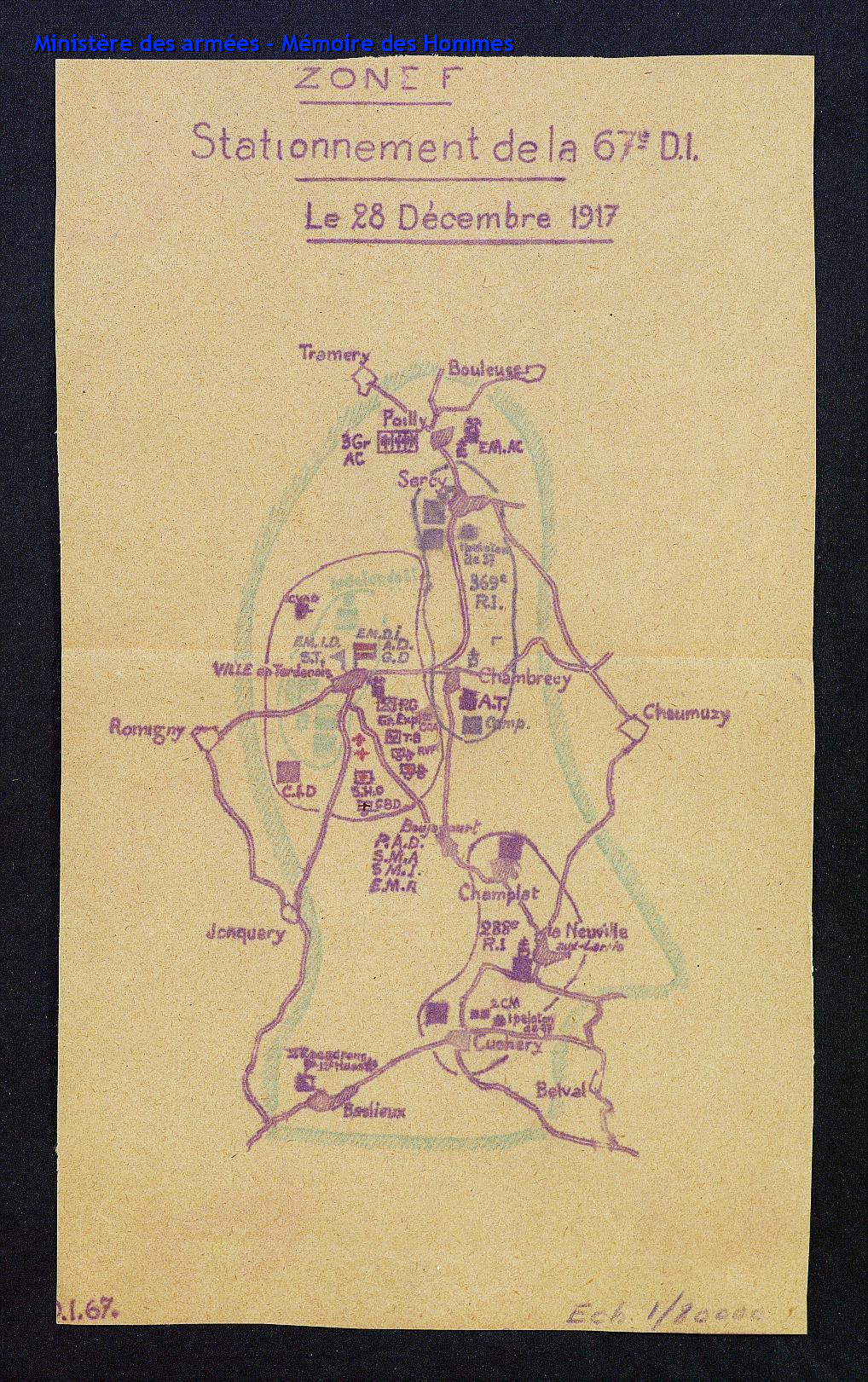 Carte de stationnement de la 67e D.I. (1917, Service Historique de la Défense, GR 26 N 389/10)