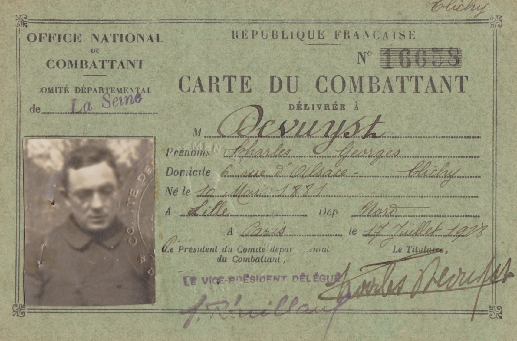 Carte du combattant du père Devuyst (1928, archives des Fils de la Charité, 2E01/05)