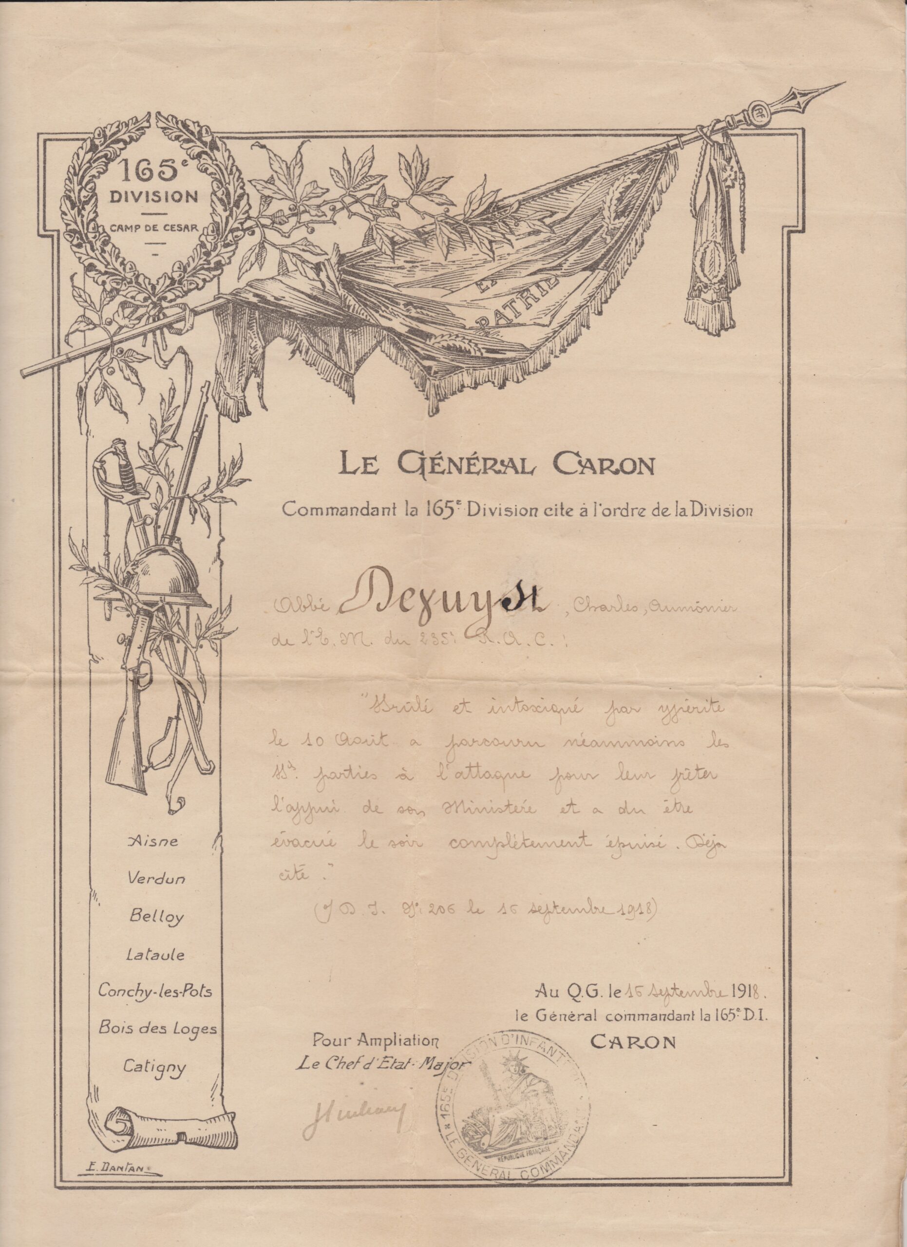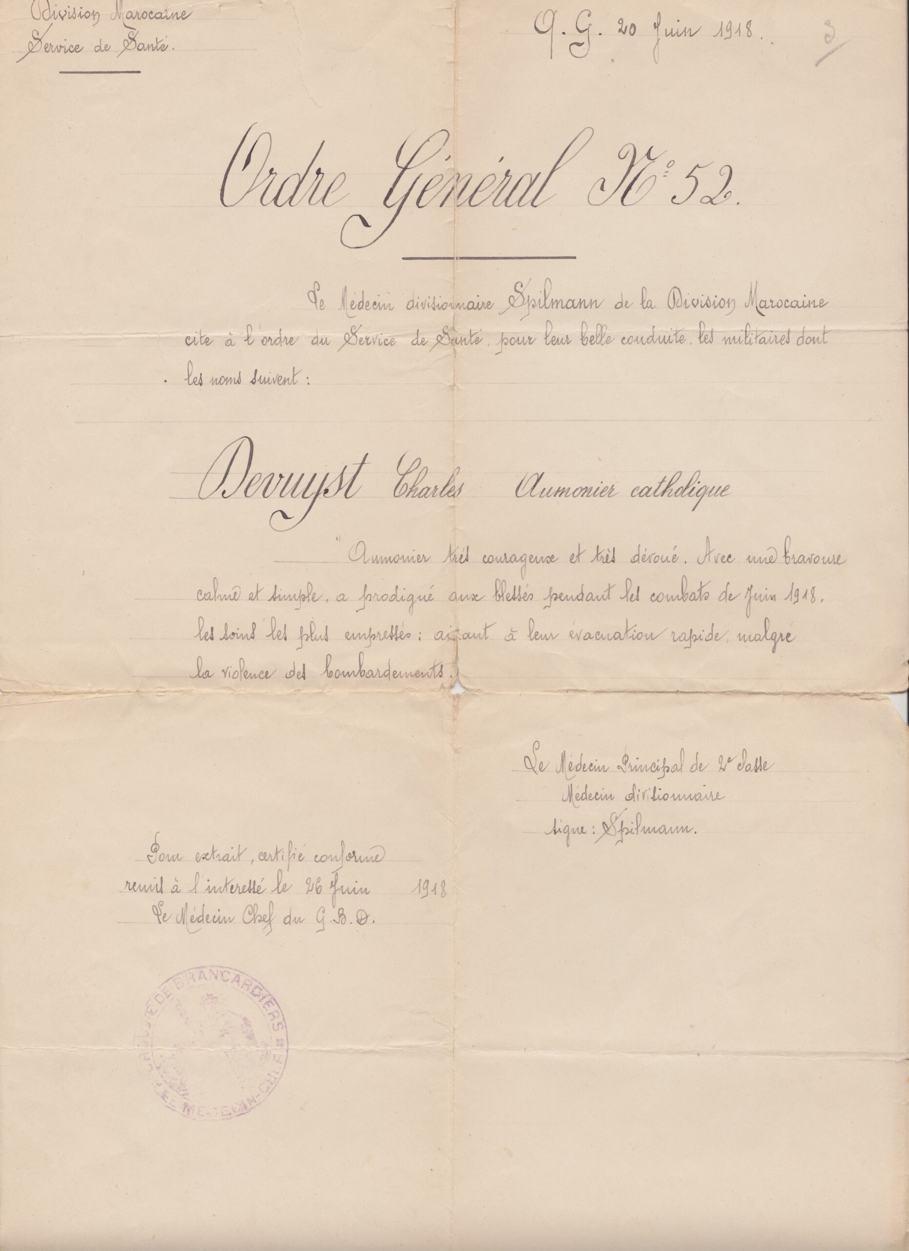 Citations du père Devuyst en 1918 (1918, archives des Fils de la Charité, 2E01/05)