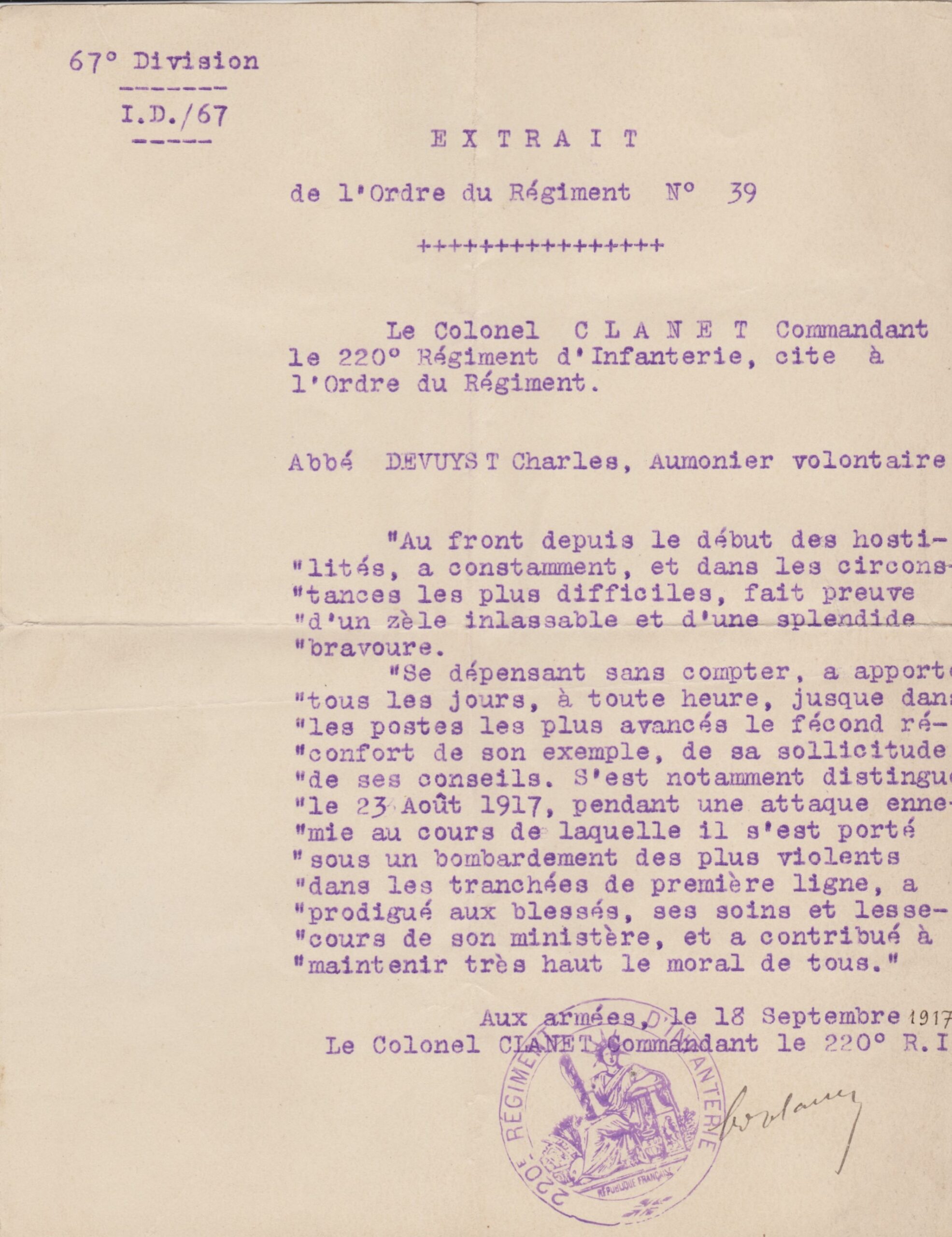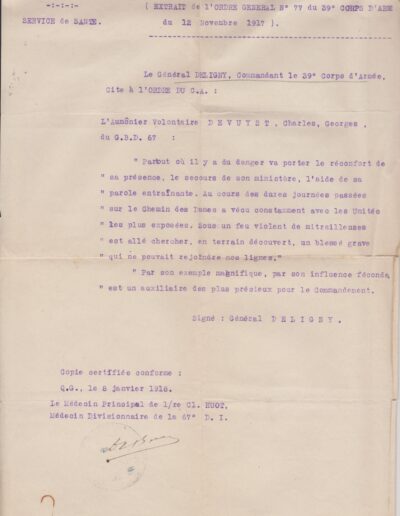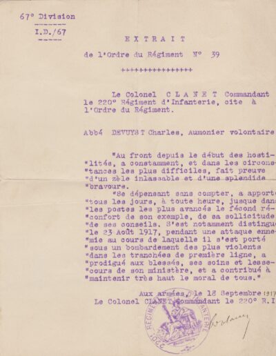 Citations du père Devuyst en 1917 (1917, archives des Fils de la Charité, 2E01/05)
