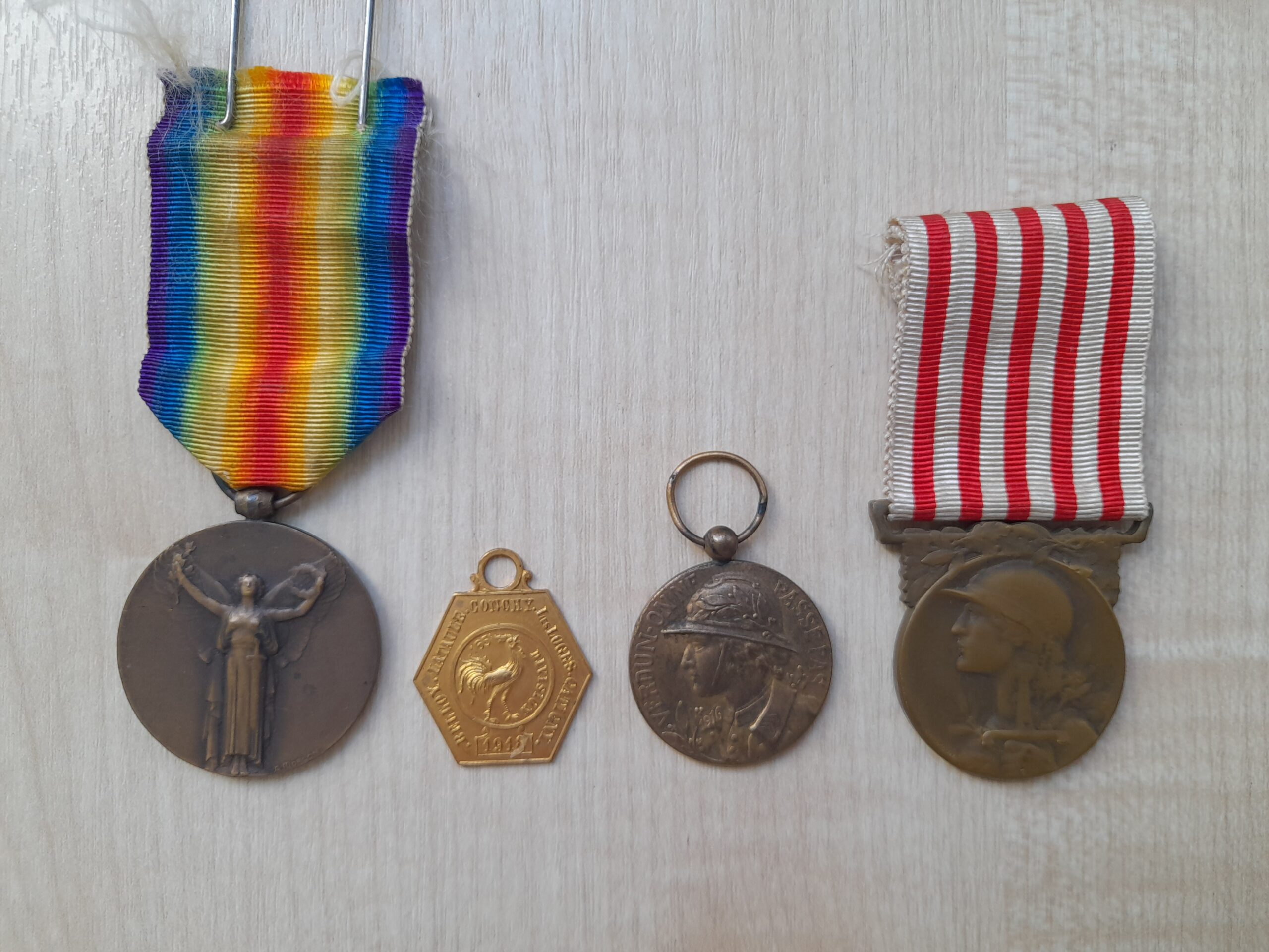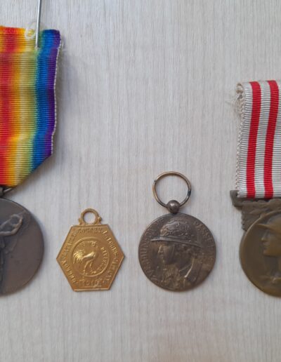 Médailles militaires et commémoratives attribuées au père Devuyst (1914-1918, archives des Fils de la Charité, n°623)