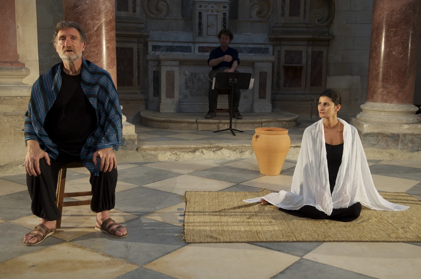 La mise en scène et la musique sont de Francesco Agnello, que nous connaissons déjà puisqu’il avait fait un concert de Hang en la fête du Sacré-Coeur de Jésus, fête patronale des Fils de la Charité, en juin 2025. En 2022, il accompagnait à la musique la pièce Le cinquième évangile d’Adrien Candiard op.